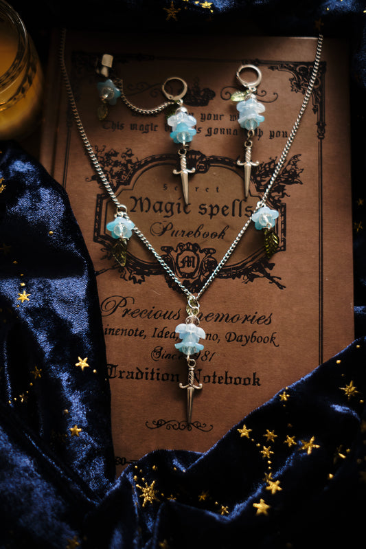 Pendientes de Flores y Espadas con Earcuff, Bisutería Medieval con Dagas